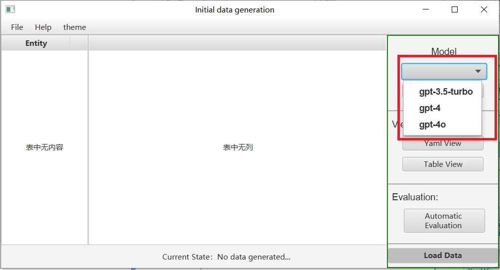 - The first step is to select a model. The current models used are gpt-4o, gpt-4 and gpt-3.5-turbo; more large language models will be added later.