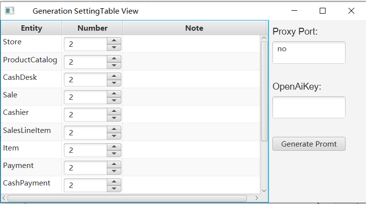 here you can set the number of entities we want to generate for each entity. Also, you can add as many prompts as you want to the note box.